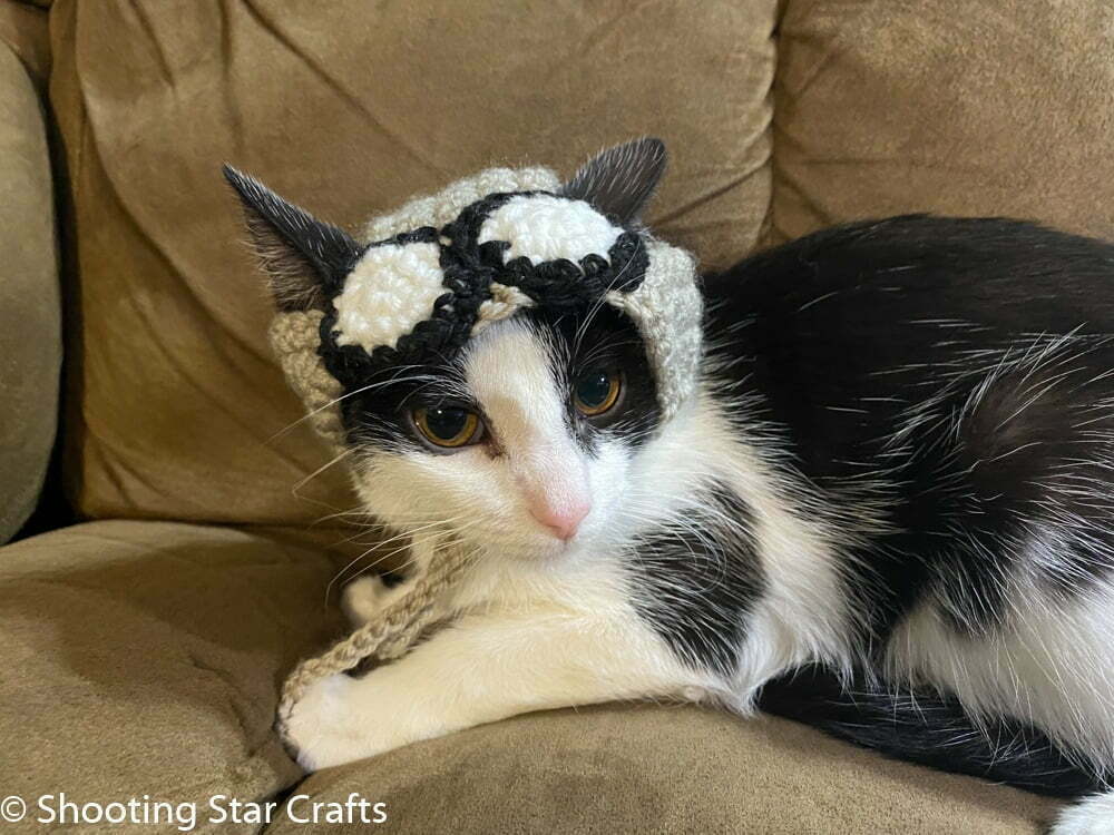 My kitten’s sister lives with my parents. She has a ton of energy and is constantly racing around the house. My mom thought she needs a cute hat to wear when she gets the zoomies, so this is what I created for her.